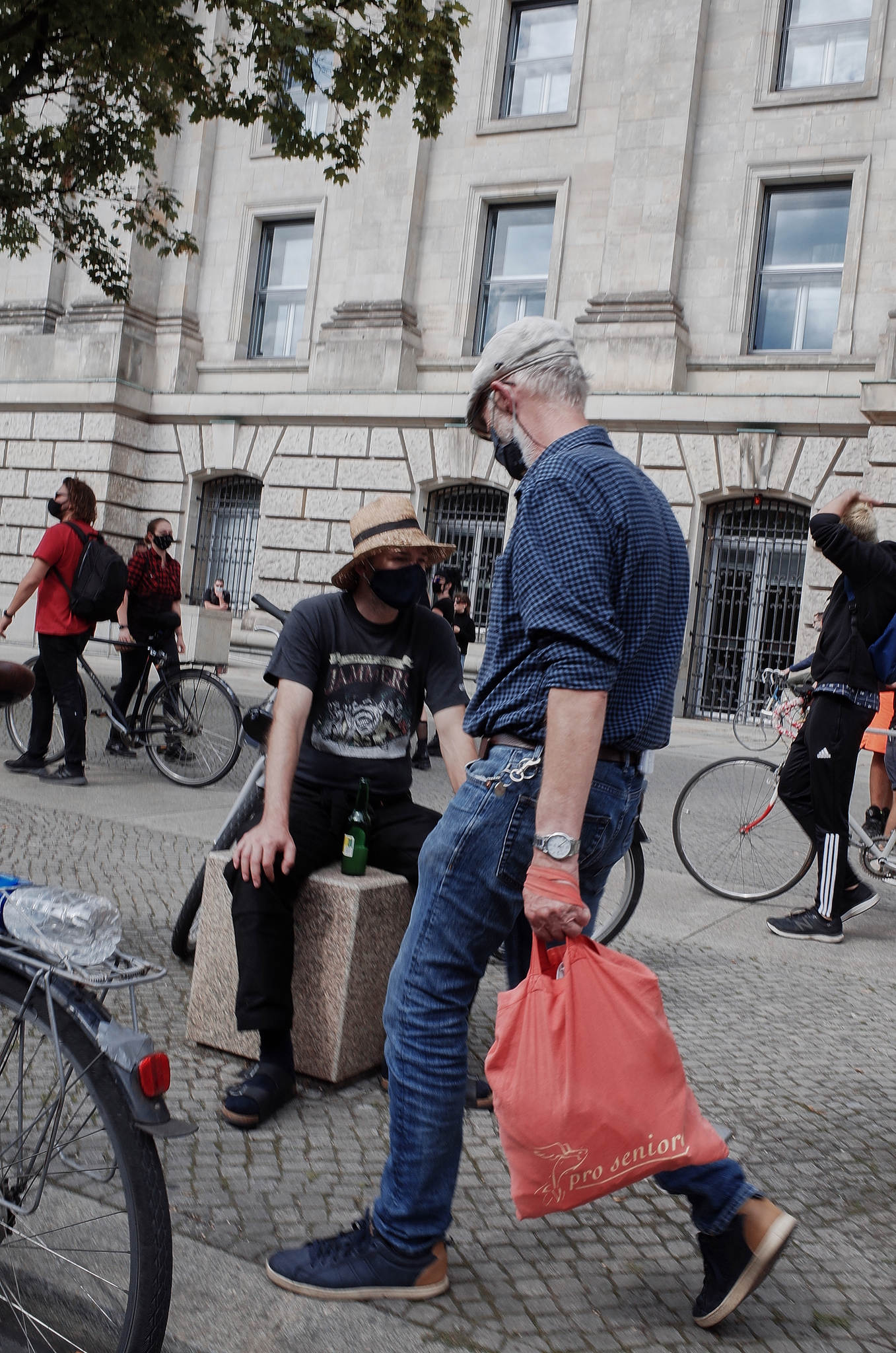 Ich wollte mir das Ganze mit meinem besten Freund, dann einfach auch Mal aus nächster Nähe ansehen und so sind wir kurzerhand mit Fahrrad und ich mit Kamera bewaffnet, Mundschutz im Gepäck, losgezogen, um die Demo und seine Vertreter, zu denen ich mich auch zähle, aus der Nähe anzuschauen.